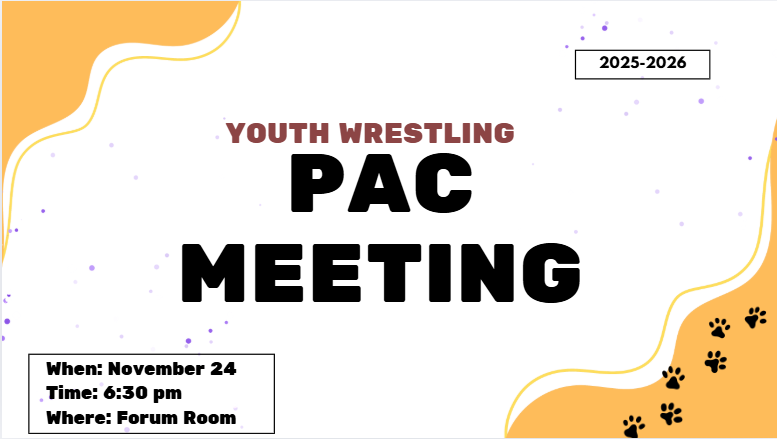 There will be a mandatory youth wrestling PAC meeting on Monday, November 24th at 6:30 pm in the Forum Room.