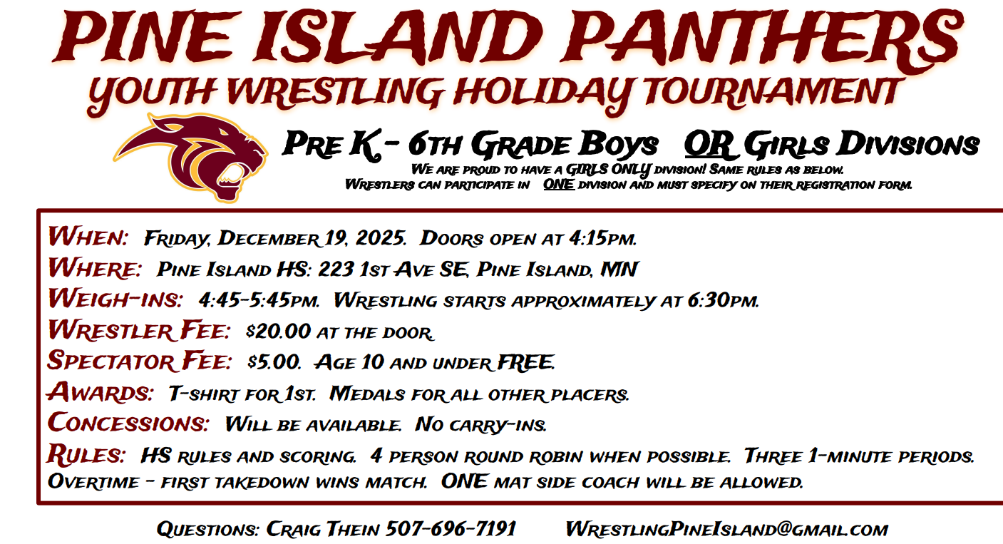 Pine Island Panthers Youth Wrestling Holiday Tournament – The Guillotine